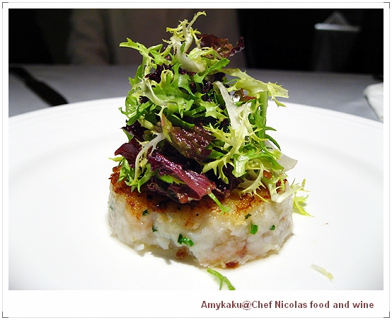 首先,上的是前菜 -- 煎蟹餅佐欖油鮮蔬沙拉 (圖摘自 AMYKAKU 食記)