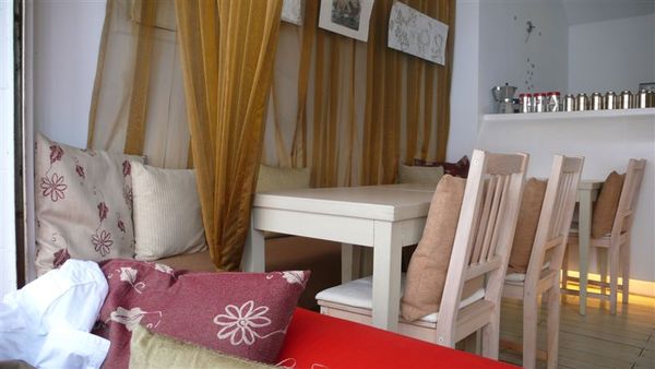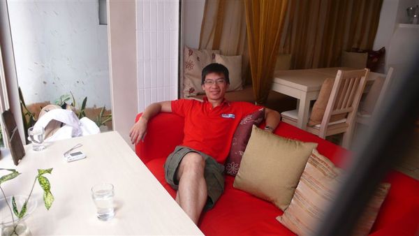 一進門,門口落地窗前的紅色沙發就吸引我們的注意,剛好店裡面還沒有客人,