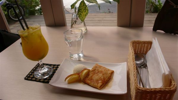 余小珊點了甜蜜焦糖蘋果捲以及水果冰茶,看起來都頗不賴。