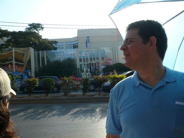 甫吃完甜孜孜的手工蛋糕之後,一夥人漫步在雅典市郊,