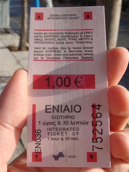 在希臘搭乘大眾交通工具,購買的車票是依 "時間" 計算的,