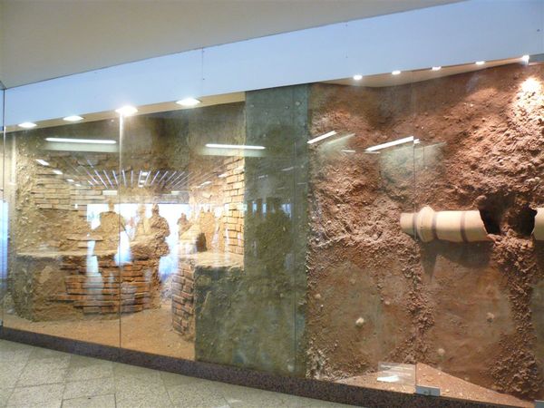 (下圖是挖掘地鐵時發現的古代水管遺蹟)
